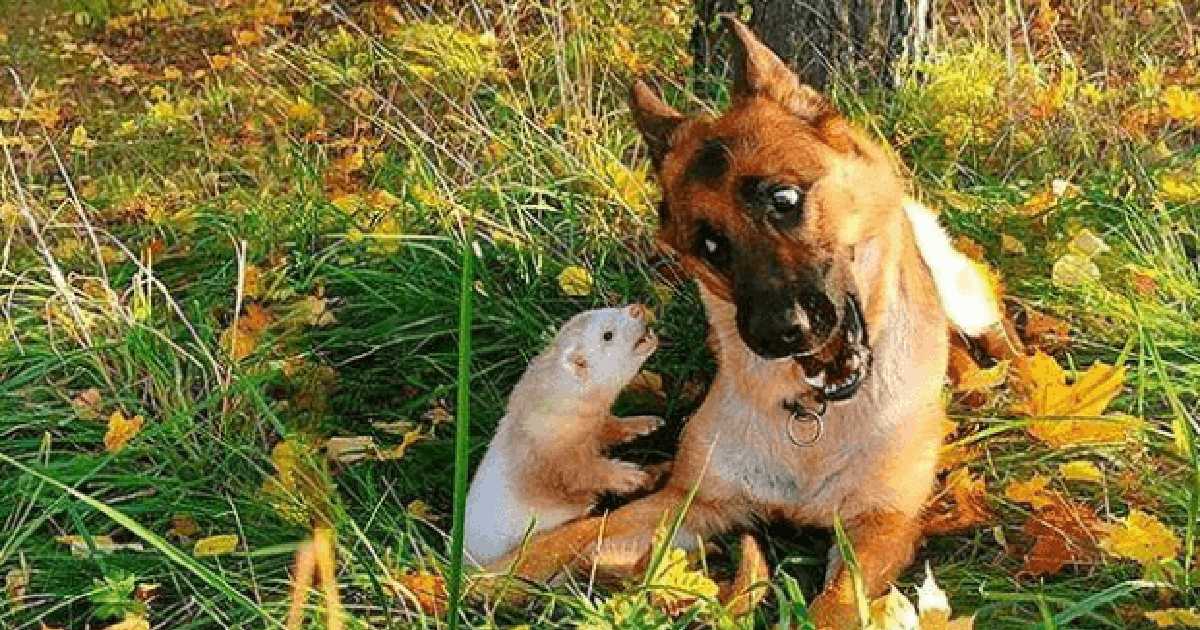 除此之外,德牧在與雪貂相處的時候也是極爲和諧,就看到這兩個小家夥在一起的時候,那畫面實在是太美了!